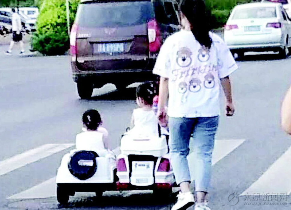 拍攝經過:6月29日,我在和平北路迎澤西大街口附近看到,一名女子正陪著兩個四五歲大的小孩過馬路。令人吃驚的是,這名母親太“心大”,竟然讓兩個孩子“駕駛”著電動玩具車過馬路。這一幕引來不少路人側目,我也不禁為這兩個孩子捏了把汗。看到孩子們安全通過,我才松了口氣。