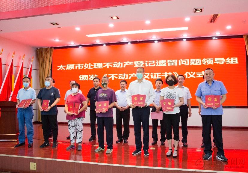 6月30日,太原市召開(kāi)處理不動(dòng)產(chǎn)登記遺留問(wèn)題領(lǐng)導(dǎo)組頒發(fā)《不動(dòng)產(chǎn)權(quán)證書(shū)》儀式,為太鐵集團(tuán)和太鋼集團(tuán)等國(guó)有大型企業(yè)頒發(fā)《不動(dòng)產(chǎn)權(quán)證書(shū)》。據(jù)悉,太原市上半年完成不動(dòng)產(chǎn)登記歷史遺留問(wèn)題處置登記50129套。