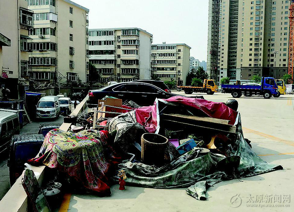 7月1日,小井峪路華峪東區停車場,大件垃圾被隨意堆放在停車位上,不僅不衛生,而且破壞了整潔的小區環境,存在著極大的安全隱患。柴杰梁攝
