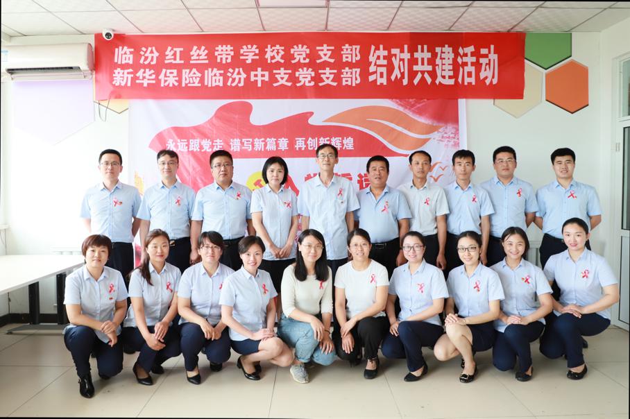 7月4日,新華保險山西分公司臨汾中支黨支部與臨汾紅絲帶學校黨支部開展“光輝歲月砥礪前行”支部共建活動,雙方黨員共20人參加。