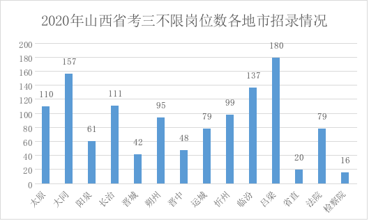 從上表中可以看出,在各地市的崗位中三不限的崗位占比較大,其中呂梁三不限的崗位數最多為180個。這樣考生在報考方面可以很容易選擇自己喜歡的崗位,但是三不限報考崗位人數會更多,所以考生要注意對熱度比較大的三不限崗位要謹慎報考。