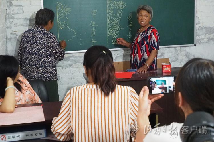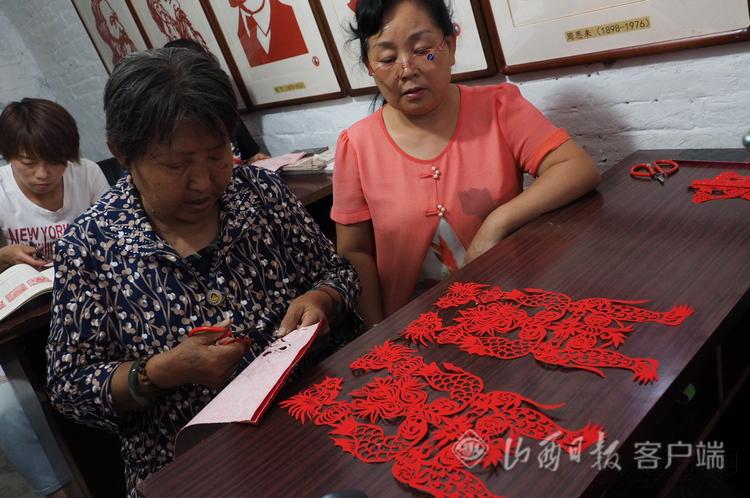 7月11日,國家級非物質文化遺產一一山西中陽剪紙傳承人王計汝大師在中陽縣龐家會村委會的剪紙工作室,在向遠道而來的求學者講授中陽剪紙傳統技法。龐家會村文化底蘊十分深厚,特別是剪紙藝術在國內享有極高的聲譽,是我省首批32項入選國家級非物質文化遺產名錄里唯一的民間美術--中陽剪紙。龐家會村有眾多的剪紙高手,王計汝、高保香、劉玉連現在是中陽剪紙的主要代表人物。她們的作品多次被文化部、省文化廳等中央省市縣有關部門授予金獎、銀獎,農民藝術家們通過豐富的想象,細膩的技術、靈巧的雙手用一幅幅精美絕倫的剪紙圖案,栩栩如生、形象逼真,國內外剪紙藝術愛好者經常慕名而來互相切磋技術,進行作品交流。龐家會村的剪紙藝術正以它獨特的魅力,極富農村文化特色的觀賞性、教育性走向更高、更遠。