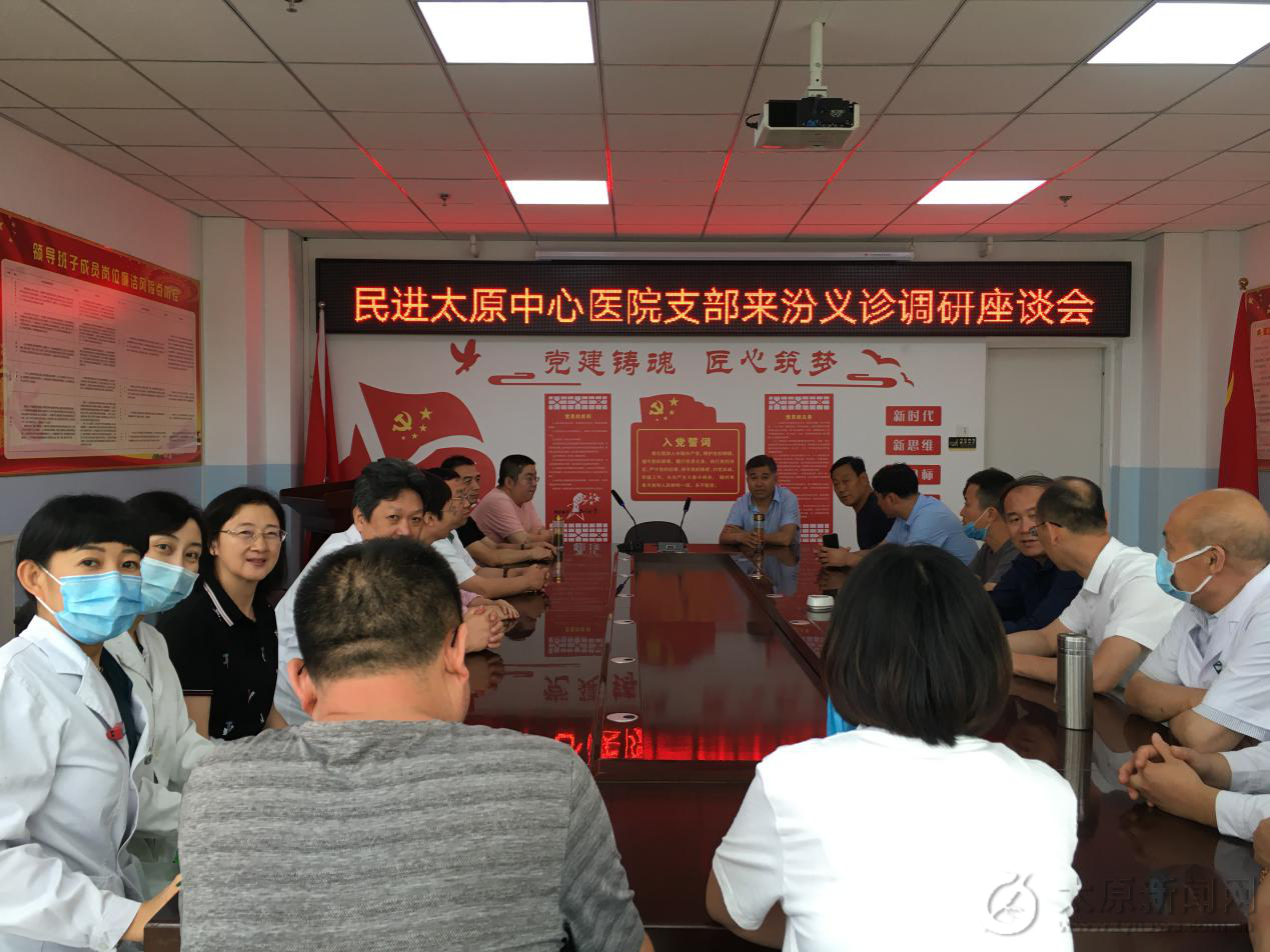 義診結束后,民進太原市中心醫院支部與民進汾陽總支部進行了座談。汾陽市委統戰部副部長劉初弘講述了汾陽統戰工作方針、地方特色和地域優勢,民進太原市中心醫院支部通過調研座談,受到很大啟發,對今后支部工作的開展有了新思路。