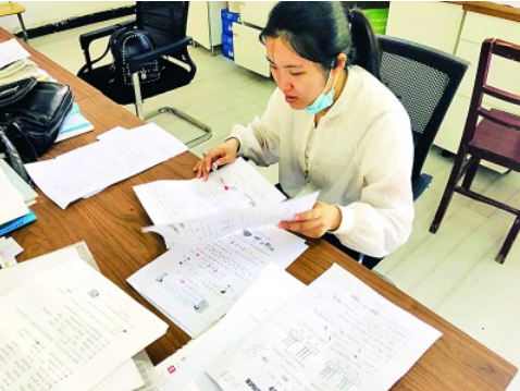 陳小珍在南山小學批改試卷。光明圖片