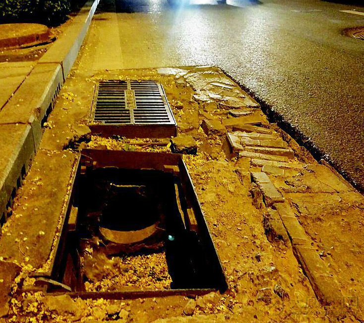 拍攝經過:7月28日晚,我由東向西途經北中環街大同路口附近時,發現路北靠近綠化帶的機動車道上,有一個排水口的雨箅子缺失。看著快速駛過的機動車,再看看這個排水口,不禁為這些車輛的安全擔心。在此,希望產權單位盡快補齊設施,以消除隱患。