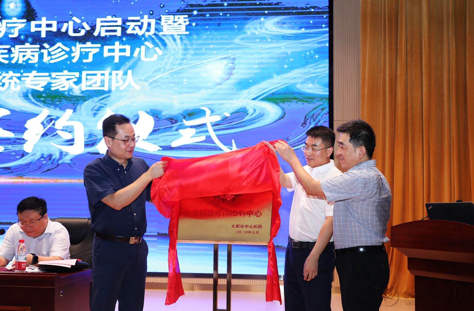 太原市衛健委工委副主任孫慧生和太原市中心醫院黨委書記趙永生為太原市中心醫院消化系統腫瘤多學科診療中心揭牌。