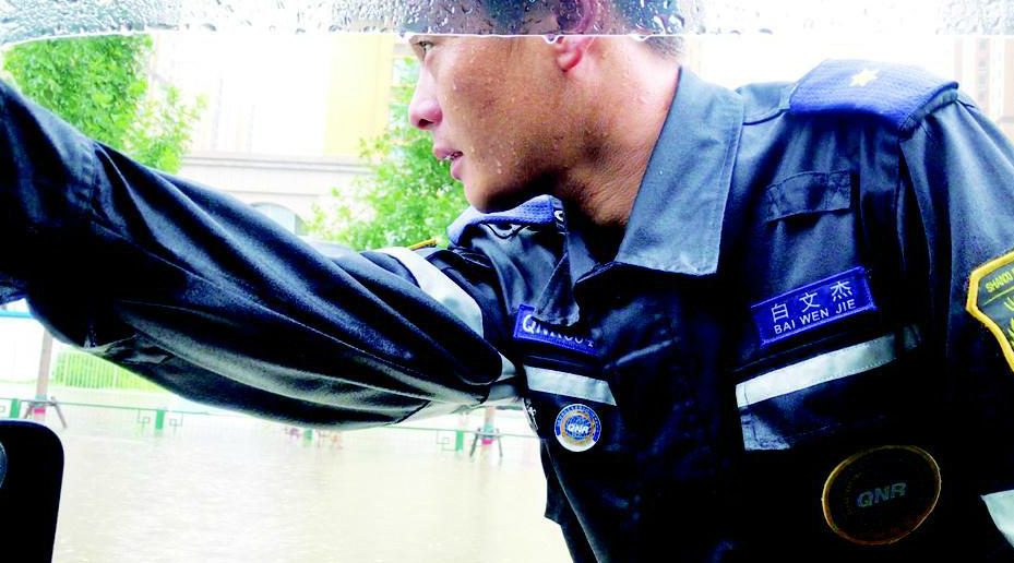 從上午8時30分開始,白文杰在積水中整整堅持了3個小時,上午11時30分許,把能救援的車全救出后,他才和隊友們離開現場。