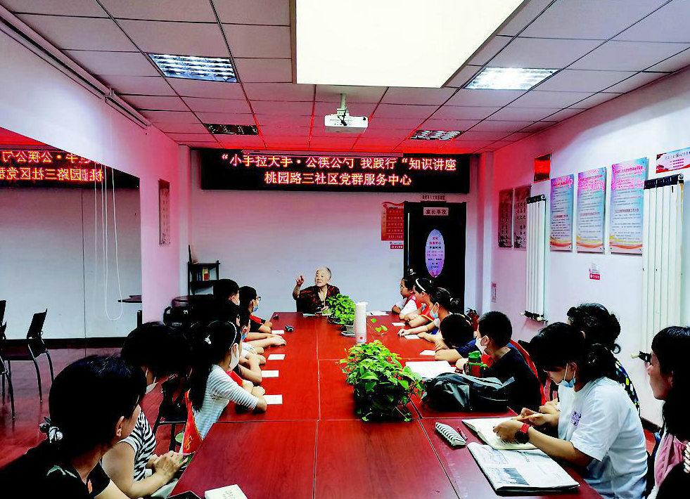 為積極推進“公筷公勺”行動,打好“舌尖上的防疫戰”,引導轄區未成年人及其家人養成安全、健康、衛生、文明的用餐習慣,8月14日下午,桃園路三社區黨群服務中心邀請迎澤區相關人員為桃園小學的孩子們上了一堂精彩的關于“小手拉大手公筷公勺我踐行”知識講座。講授人通過圖文并茂的方式,向青少年倡導“以身作則用公筷”“勸說家人用公筷”“禮貌勸客用公筷,為自己和他人的健康,推動公筷公勺“我”踐行。