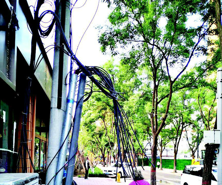 拍攝經過:8月20日,我途經菜園西街老軍營東巷口東南角時,差點被懸掛在線桿上的幾根剪斷的廢線纜劃傷,希望相關部門盡快消除此處隱患。