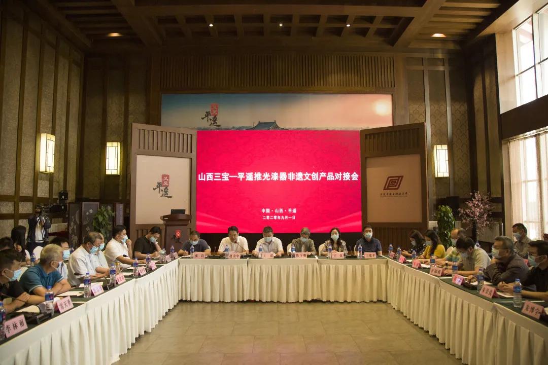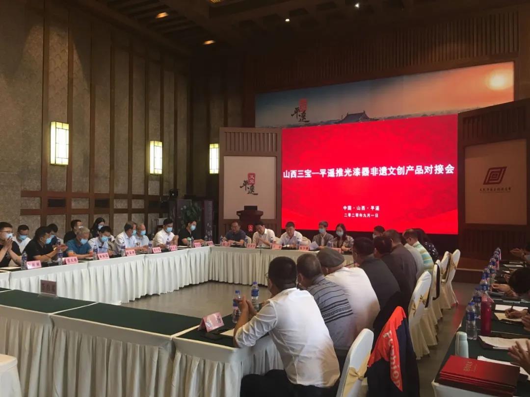 2020年9月1日上午,山西三寶·平遙推光漆器非遺文創產品對接會在平遙古城舉行。本次會議由山西省文化和旅游廳主辦,晉中市文化和旅游局、平遙縣人民政府、故宮文創研發交流中心承辦。山西省文化和旅游廳副廳長級干部陳少卿、山西省文化和旅游廳產業發展中心副主任王真、晉中市文旅局局長王超、晉中市文旅局副局長王建平、平遙縣委常委、副縣長趙凌中、平遙縣文旅局局長姚晉峰、中國青年網創新產品中心副主任汲麗娜、文旅部中外文化交流中心專家陳澄、故宮文創研發交流中心副主任張巖、平遙推光漆器國家級工藝美術大師薛生金、梁中秀,省級工藝美術大師耿保國、雷天勇,唐都推光漆器有限公司、恒隆泰漆藝有限公司負責人以及來自北京的數十家工藝美術和文創企業代表出席本次活動。晉中市文旅局局長王超主持會議。
