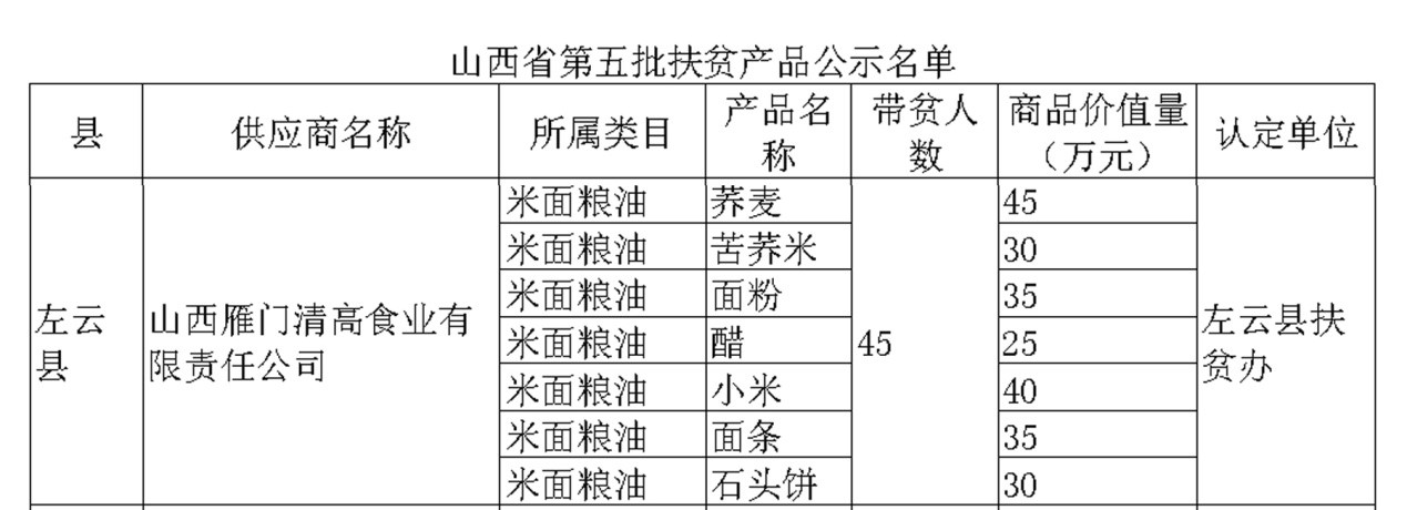雁門清高作為山西省龍頭企業,不僅有良好的經濟效應,也產生了廣泛的社會效應,還是扶貧辦名正言順頒發過扶貧認證的企業,雁門清高帶動左云縣村民致富。每年都會與種植戶簽定合同,以高于市場價的保護價與當地農戶簽訂合同,極大的帶動了農民的積極性。2019年雁門清高苦蕎種植基地糧食產量達到5000多噸,直接帶動左云5個鄉鎮,90多個自然村,5000多名農民增收,戶均增收2300元,畝均增收200元。