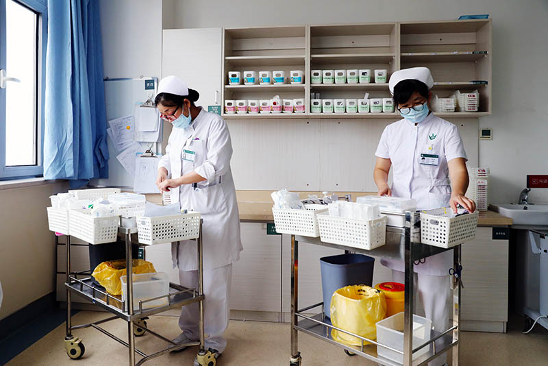 上午十時(shí)許,內(nèi)分泌科的大夫還是如平時(shí)一樣認(rèn)真查房,和患者親切交談,耐心安撫患者,準(zhǔn)確回答患者的每一個(gè)問(wèn)題。護(hù)理站的護(hù)士們依舊一刻不停地忙碌著,仔細(xì)核對(duì)醫(yī)囑,發(fā)放藥品、準(zhǔn)備治療車為患者輸液、要做到“三查七對(duì)”。