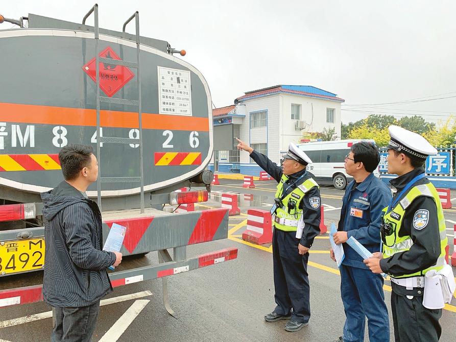 10月3日,萬榮縣公安局交通管理大隊加強“兩客一危一貨”車輛的管理,逐車對滅火器、安全錘、輪胎、車燈及駕乘人員安全帶進行檢查,確保國慶期間轄區道路安全暢通。李錫慧 攝
