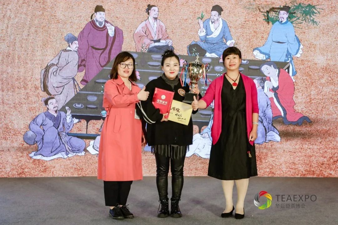 涂仙芳女士、胡燕女士為獲獎選手頒發“金牌茶師”獎杯、證書及價值5000元的林應飛白茶獎品