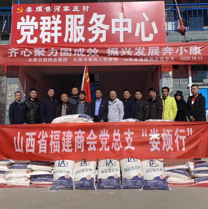 10月17日,在第七個(gè)國(guó)家扶貧日來(lái)臨之際,山西省福建商會(huì)為回報(bào)社會(huì)鞏固脫貧成果,由商會(huì)黨總支組織部分黨員和入黨積極分子來(lái)到婁煩縣婁煩鎮(zhèn)河家莊村慰問(wèn)鄉(xiāng)親,并向村民捐贈(zèng)了327袋白面。