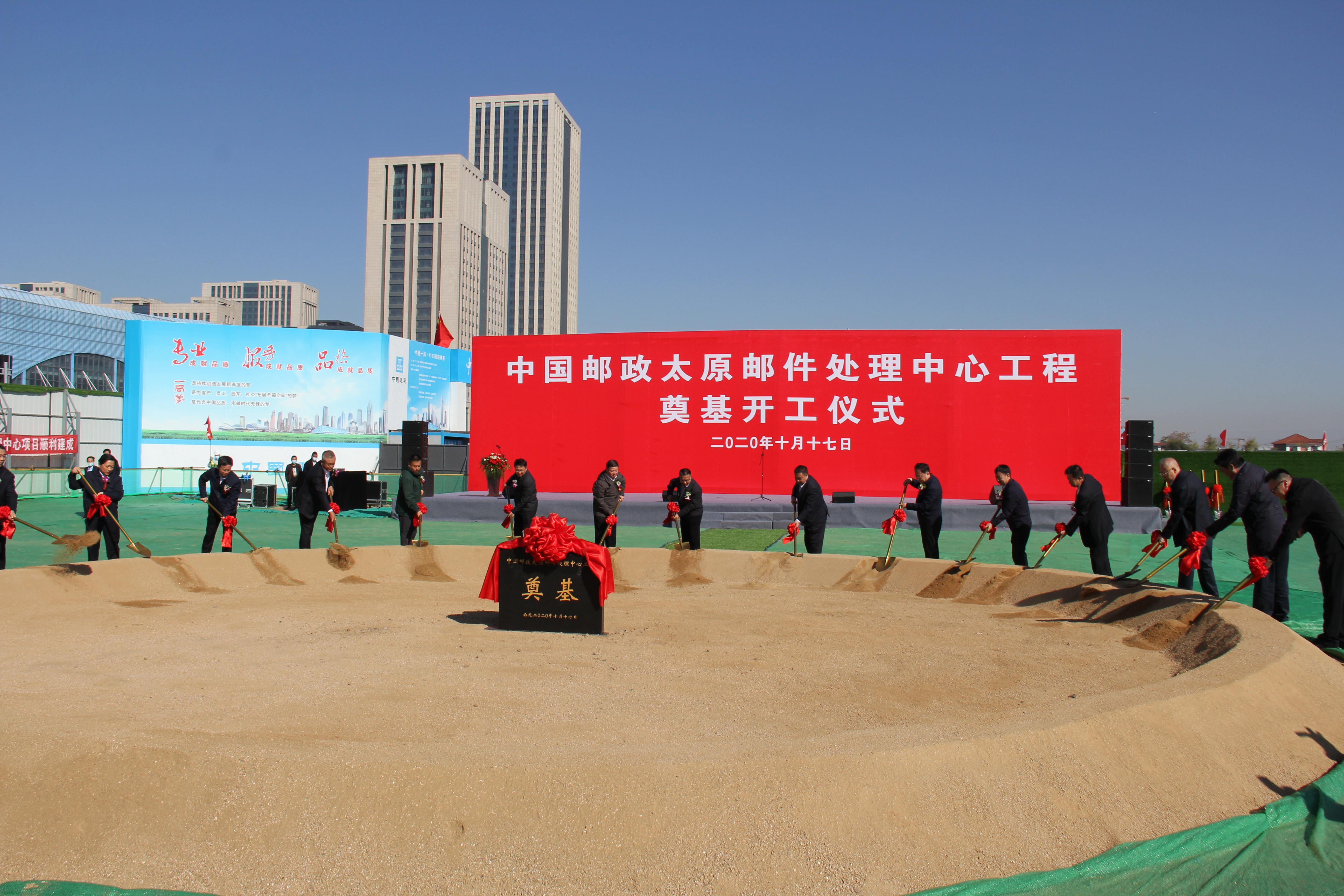 10月17日,太原郵件處理中心工程項目舉辦奠基開工儀式,此工程由中建一局總承包公司承建。中國郵政集團有限公司山西省分公司黨委書記、總經理姚杰、太原市人民政府副市長張齊山、山西省郵政管理局局長秦紅保、山西省工業和信息化廳副廳長喬麗剛、中國建筑一局(集團)有限公司副總經理、總工程師薛剛和中國建筑一局(集團)有限公司總承包公司黨委書記、董事長張浩以及相關單位領導出席奠基開工儀式。