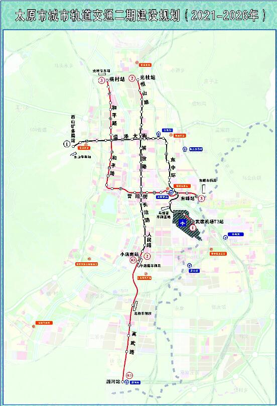 太原市城市軌道交通二期的建設規(guī)劃由4條線路組成,全長55.46公里,其中地下線36.46公里,高架線19公里。共設35座車站,其中1座為換乘車站。設車輛段2座,停車場1座。