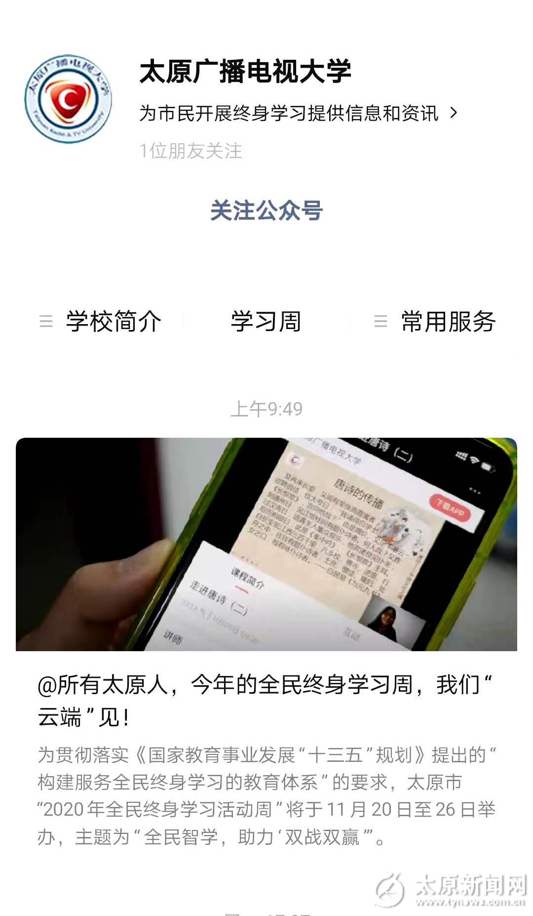 詳細學習內容、課程安排市民朋友們可通過關注太原廣播電視大學(太原社區大學)官方微信進行了解。