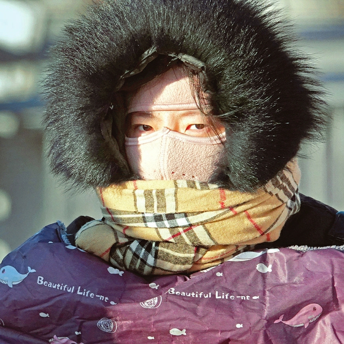 1月7日,今年首個寒潮降臨太原,出行的市民們“全副武裝”,抵御嚴寒。