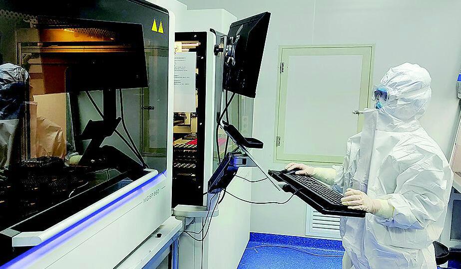 工作人員在改造后的大巴車上為大家檢測核酸。