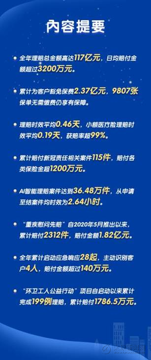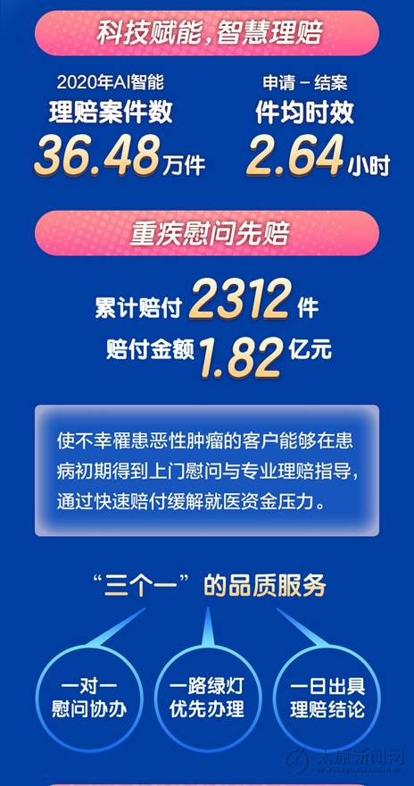 2020年,新華保險依托科技賦能加強智慧理賠,AI智能理賠案件達到36.48萬件,從申請至結案件均時效僅為2.64小時。同時,公司積極優化理賠服務,推出了一系列創新服務舉措。