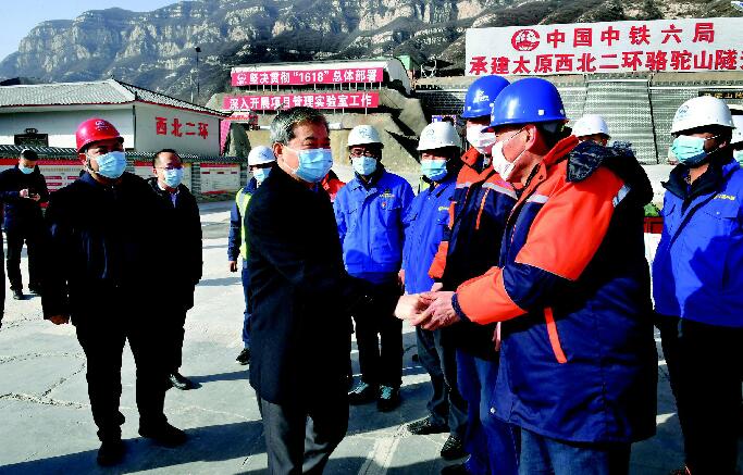 1月27日,省委常委、市委書記羅清宇深入太原西北二環高速公路駱駝山隧道施工現場,調研重點項目建設情況,并代表市委、市政府向奮戰在一線的廣大建設者表示慰問。市委常委、秘書長劉鹓,副市長張齊山參加。