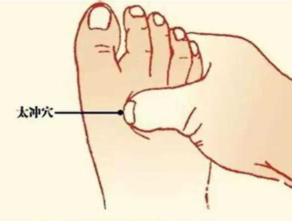 位置:太沖穴在足背側,當第1跖骨間隙的后方凹陷處。太沖穴位于足背,第一、二跖骨間,跖骨底結合部前方凹陷中,或觸及動脈搏動,正坐或仰臥取穴。操作方法:用拇指點揉3-5分鐘。