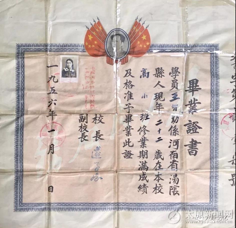 經過兩年多的學習,22歲的王智勤獲得了掃盲班的畢業證書。幾個月后,憑著這張畢業證參加了山西機器廠的招工考核,成為一名化驗員。