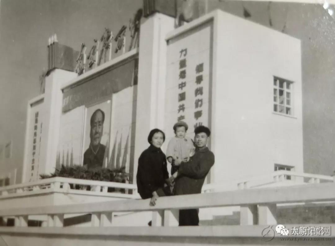 徐云千與妻子帶著2歲的女兒在他設計的五一廣場觀禮臺前合影,這個觀禮臺是為迎接新中國成立20周年而設計建造的。