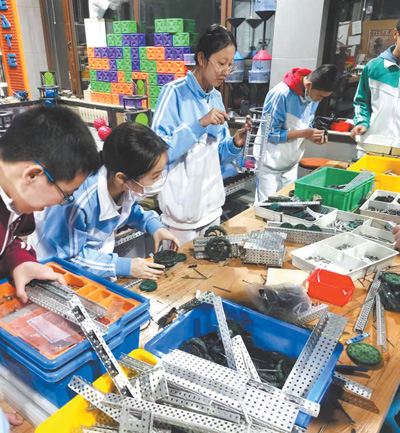首都師范大學附屬中學機器人社團的學生在制作機器人作品。朱安琪攝