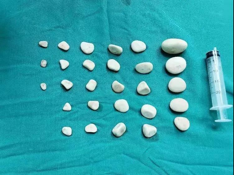 陳園主任團隊為常奶奶實施了腰麻下手術治療,手術僅用時20分鐘,取出膀胱結石28枚。