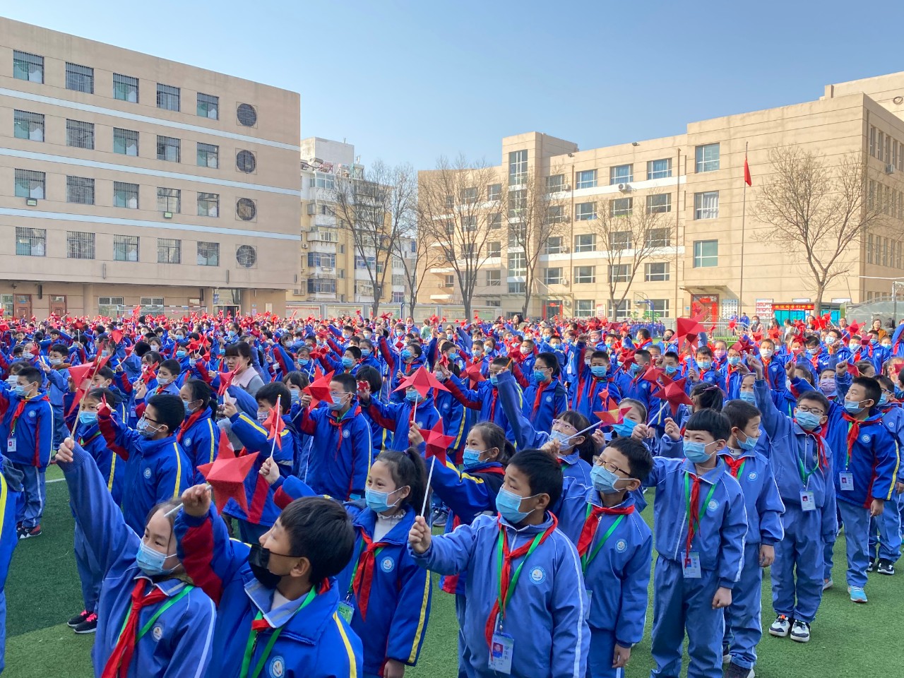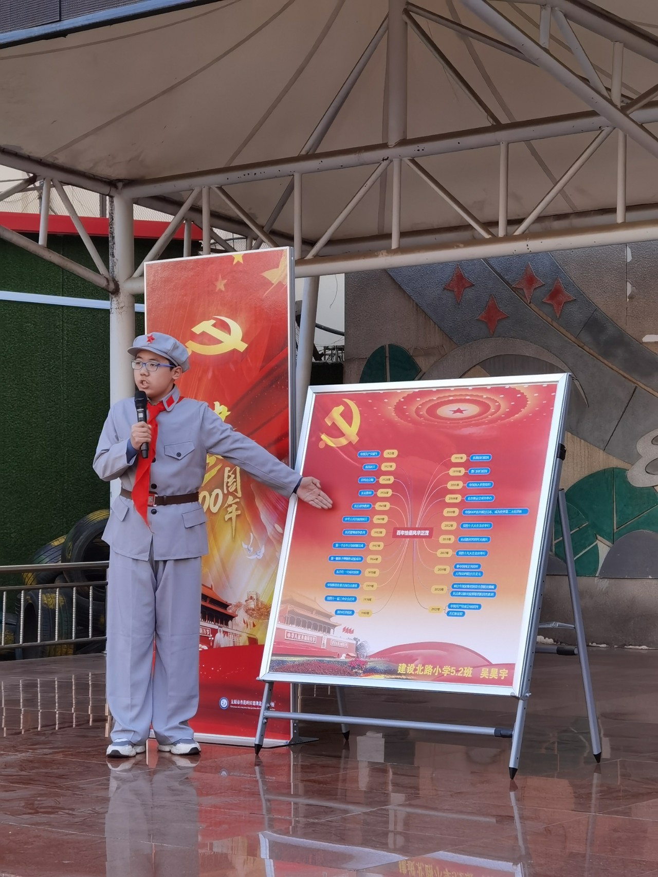 3月4日,建設北路小學舉行的童心向黨,禮贊百年主題開學典禮上,五年級二班的的吳昊宇同學和同學們分享自己做寒假中學習黨史的心得。
