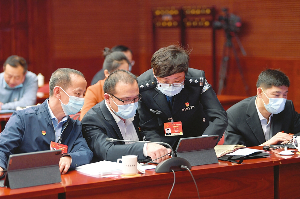 3月6日上午,山西代表團舉行全體會議,審查“十四五”規劃和2035年遠景目標綱要草案。在新的五年里,如何確保全面建設社會主義現代化國家開好局?怎樣做好鞏固拓展脫貧攻堅成果同鄉村振興有效銜接?如何推動高質量發展?……代表們圍繞草案暢所欲言共謀良策。圖為我省代表(左起)牛三平、王雅麗、雙少敏會后就共同關注的話題進行深入交流。