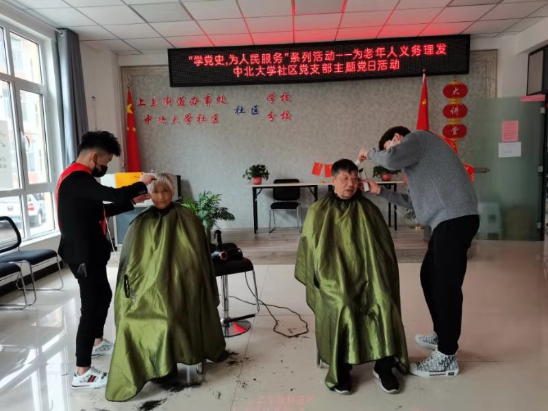 三月的太原春寒料峭、乍暖還寒,依山傍水的中北大學社區楊柳吐綠、桃杏爭艷。中北大學社區黨支部于3月24日開展了“學黨史,為人民服務”的暖心主題黨日活動——為居民義務理發。