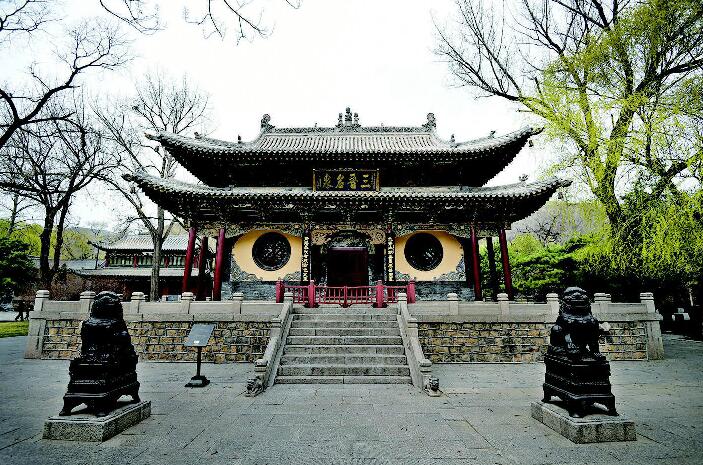 在圣母殿,游人還能看到宋朝人的樣子。殿內43尊宋代彩色泥塑,大小接近真人,或灑掃梳妝,或奏樂歌舞,形象逼真,表情豐富,呈現了宋代宮廷生活場景以及當時的人情世態。圣母殿前廊柱上的木制蟠龍,雕刻于宋元祐二年(1087)。八條龍各抱一根大柱,鱗甲須髯,怒目利爪,距今近千年,仍栩栩如生,令人不禁嘆服木質的優良及工藝的精巧。圣母殿的木雕蟠龍柱,也是我國現存的最早實例。