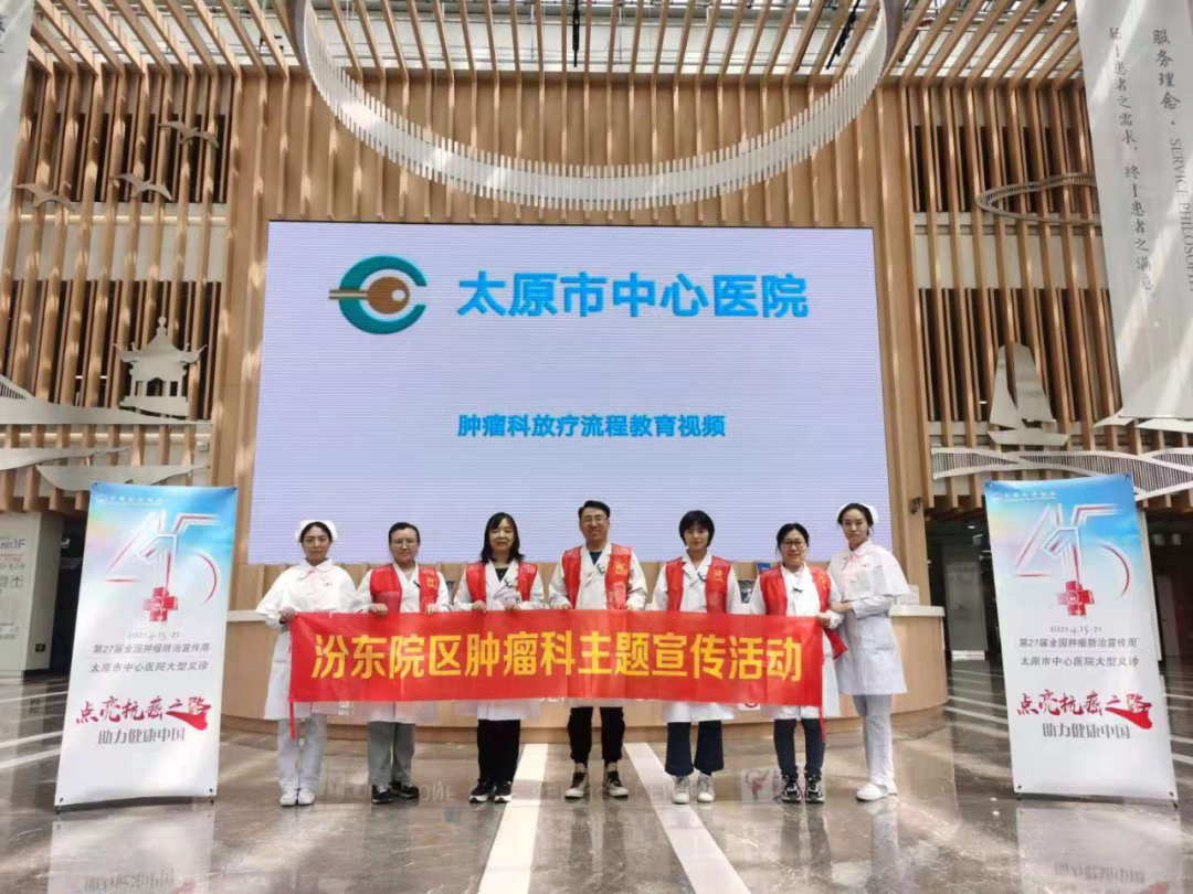 在義診活動現場,擺放著防癌科普宣傳展板、腫瘤疾病宣傳資料,吸引了許多前來就診的患者學習觀看。在腫瘤科汾東病區張之君主任的帶領下,科室專家對患者展開了防癌常識普及、醫療咨詢、健康教育等活動,積極倡導大眾科學預防腫瘤。
