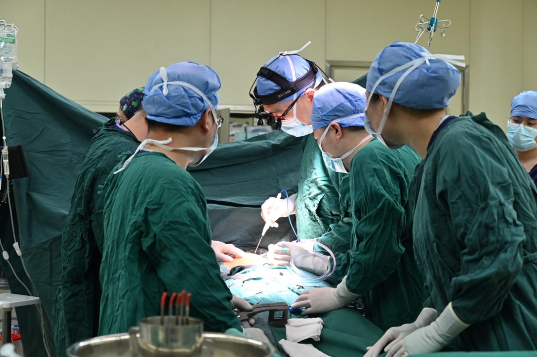 4月15日,經過嚴密的術前準備,陳小平主任、付志華副主任為患者成功實施LCX支架介入治療。接著,心臟外科團隊走上手術臺完成小切口左冠前降搭橋術結合血管內余分支成形術。