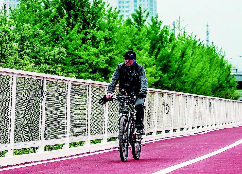 市民“搶鮮”體驗汾河景區(qū)自行車專用道