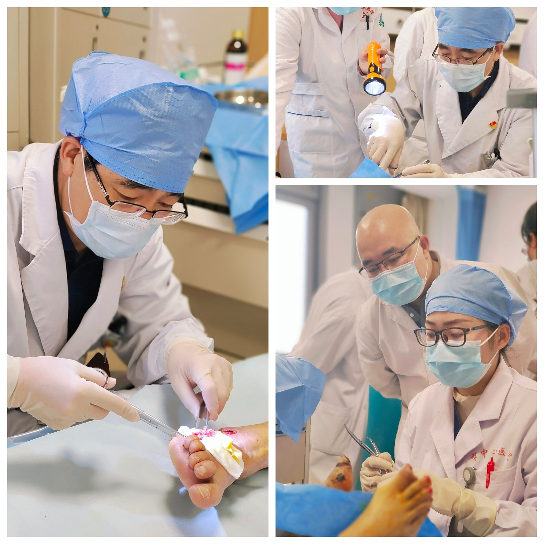 本次培訓班采用理論授課和現場觀摩相結合的形式。在短短一天的培訓期間,授課專家為大家進行了糖足病例查房,詳細介紹了中西醫結合、內外兼顧綜合治療糖尿病足的新療法。