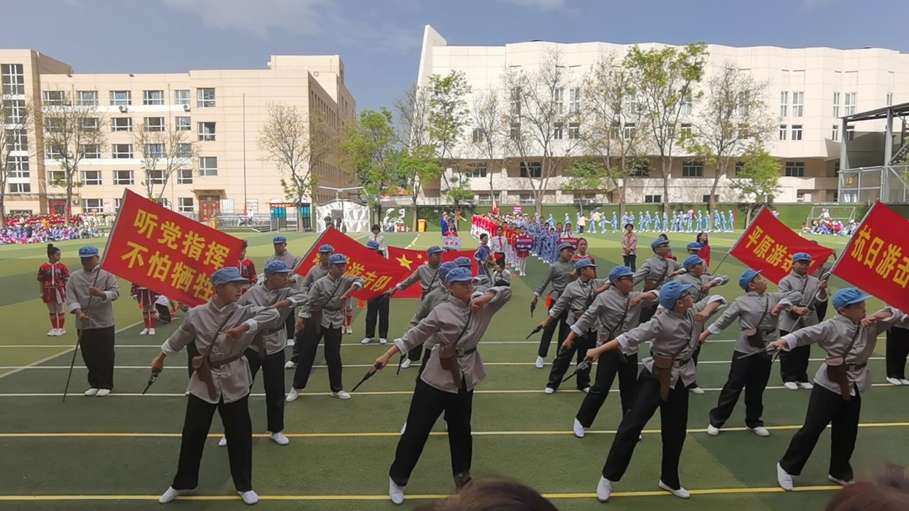 本屆運動會把思政教育與體育比賽相融合,構成了“思政+運動會”的獨特育人方式。運動會將一個個比賽項目和革命戰爭情境相融合,在革命戰爭的情境中比賽,使比賽變得更加有意義。注入了思政元素的運動會讓學生深刻學習和體驗了中國共產黨的偉大征程,從小立志聽黨話,永遠跟黨走。心中有信仰,腳下有力量,以昂揚的姿態,拼搏的斗志向建黨100周年獻禮!