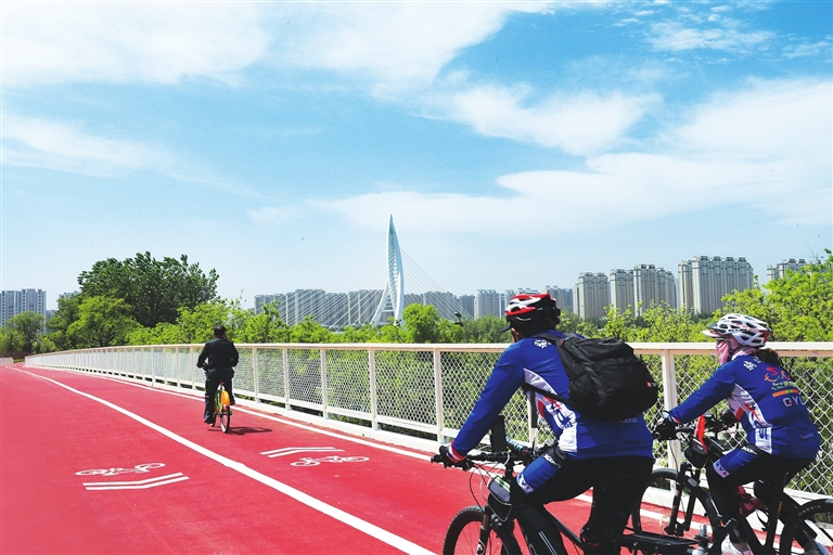 5月1日,全長75公里的太原市濱河自行車道投入使用。宛如兩條紅色絲帶的自行車道“鑲嵌”在汾河兩岸,不僅成為并州又一道靚麗的風景線,同時更極大地改變了人們的出行方式,讓生活變得更加健康多彩、富有活力。按照我市整體規劃,濱河自行車道投用后,將作為縱貫南北的中軸線,借助太原市“三山環抱、一水中分”的自然格局,與東西山自行車賽道、東西南北環線一起將山、水、城聯通,形成“一軸一環多脈絡”的城市自行車交通系統。市民騎車出行,可以穿梭于碧波綠蔭間。我市將持續打造集運動、休閑、通勤等多功能為一體的自行車路網體系,塑造多樣化、富有活力的自行車交通系統,為市民廣泛開展健身運動、提高身體素質、追求高品質生活發揮重要作用。