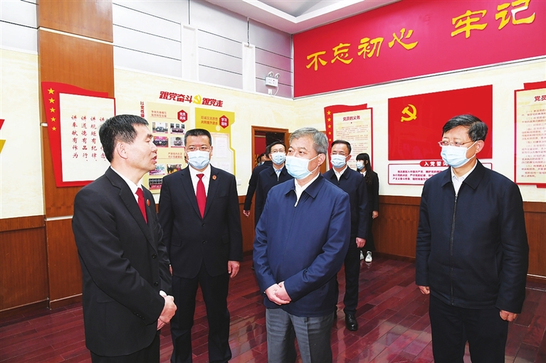 圖為省委常委、市委書記羅清宇在杏花嶺區人民法院督導檢查教育整頓開展情況。梁琛攝