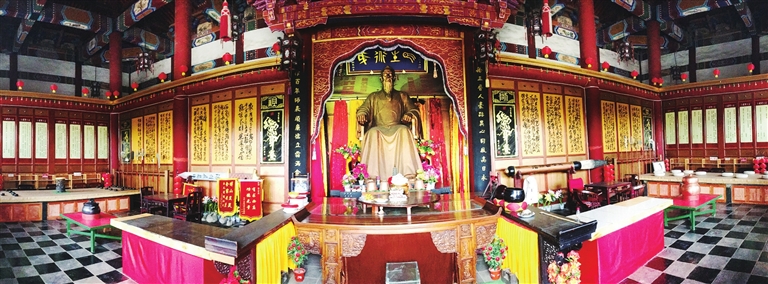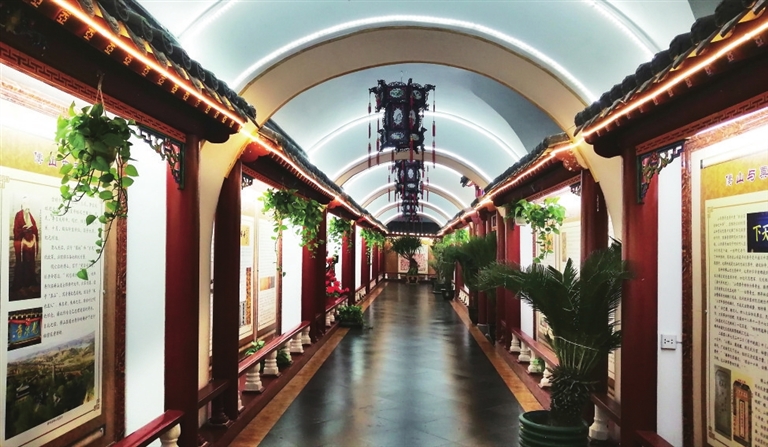 進入山門,就來到了中華傅山園主景區,這里的建筑群也是仿明式建筑風格,文化牌坊、狀元橋、傅公祠大殿等建筑,都位于中軸線上,其他單體建筑在中軸線兩側,左側依次為農耕院、文圣閣、老子閣、書畫院、哲理院、膳食院等;右側依次為民俗院、觀音閣、老爺閣、詩文院、醫藥院、非遺院等。民俗院在省市婦聯支持下集中進行家風家教展覽,宣傳德孝文化、忠義文化、誠信文化、廉政文化等;非遺院展示傅山園獲得的國家級、省級非物質文化遺產項目“頭腦(八珍湯)”和傅山拳法及剪紙、戲曲等民俗文化。這里的建筑主次分明,依據園區前低后高特點,處處有院、院院有景,變化多而不亂,頗有園林的復雜性和趣味性。