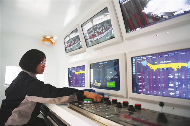 在西山煤電斜溝煤礦,井下工人輕輕按下手中遙控器,指揮18108綜采工作面液壓支架自行移動。支架準確到達預定位置,采煤時就可以更精準把握工作面的平直。