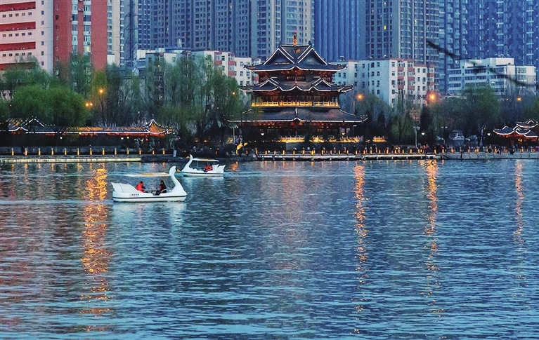 一泓碧水穿城而過,兩岸景色美不勝收。全長近43公里的汾河景區,可謂太原市最大網紅打卡地。下班來這里健身娛樂,周末來這里遛娃聚會。興致來了,也可攜伴侶、家人、好友泛舟河上,喝茶,吃火鍋,賞美景,不論白天還是夜晚,都可以真切感受到這座城市的巨大變化和獨特魅力。