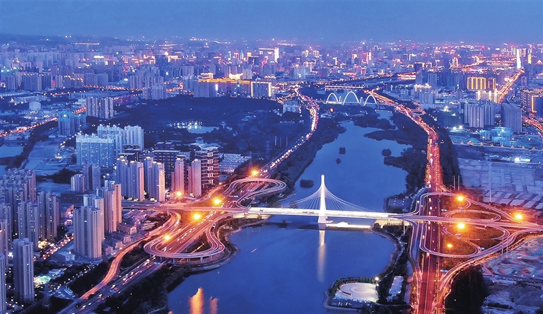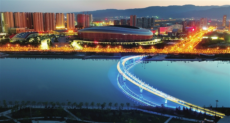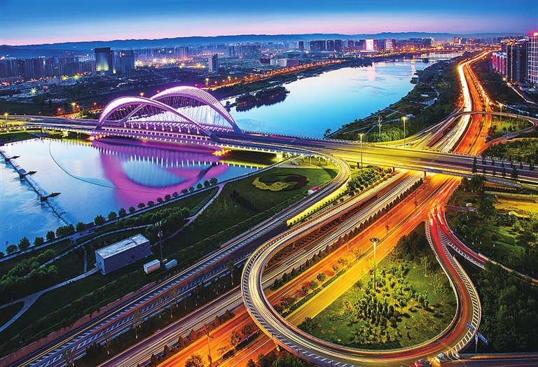 夜幕降臨,景區6萬余盞燈飾與濱河東西路光帶交相輝映,呈現出色彩斑斕的立體美景;兩岸高樓大廈及橫跨汾河形態各異的大橋,在靜謐的水面形成璀璨倒影,美如梵高筆下的油畫,讓人心神蕩漾。
