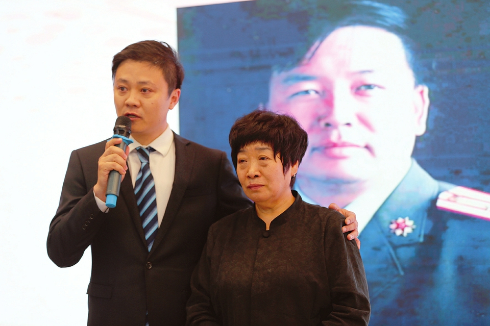 圖為抗疫英模武建忠愛人郭愛貞(右)在宣講報告會現(xiàn)場。冀古陶攝