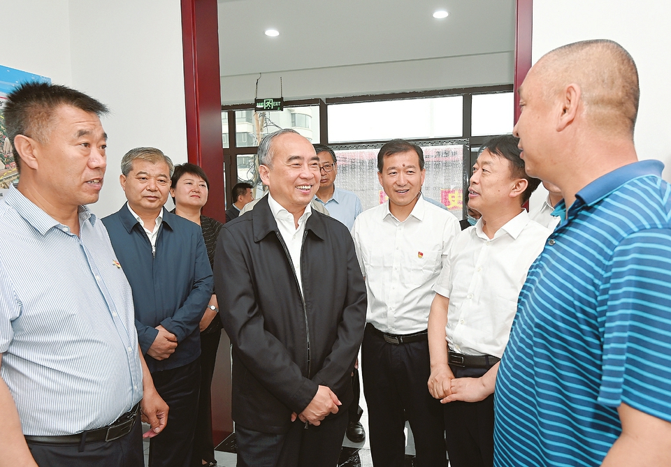 六月十六日,省委書記林武在古交市屯蘭街道木瓜會社區黨群服務中心,了解社區黨建和基層治理工作,并與正在辦理居民養老保險業務的居民親切交流。史曉波 攝
