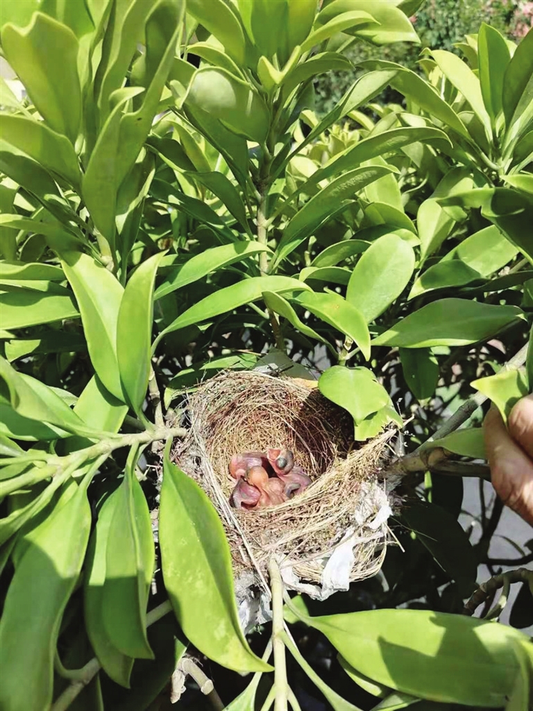 近日,家住東山的劉先生家里來(lái)了“稀客”,一對(duì)小鳥(niǎo)在他家院里的花叢“安家落戶”,還產(chǎn)卵孵雛。家有“客”至,這讓劉先生非常高興,盛情相待。