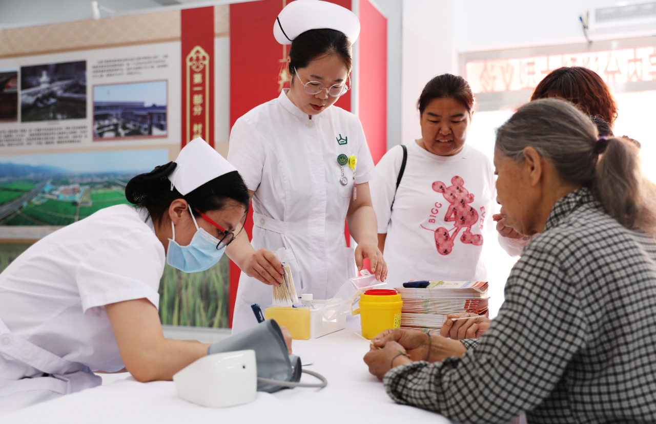 活動現場,前來問診和咨詢的村民絡繹不絕。醫護人員耐心細致地為每一位前來問診的村民提供醫療咨詢服務,仔細地問診把脈、答疑解惑,并為他們測血糖、量血壓、監測骨密度、發放健康知識手冊,受到村民的好評。村民們高興地說:“我們在家門口就能得到山西白求恩醫院醫療專家的優質服務,真是太高興了!”